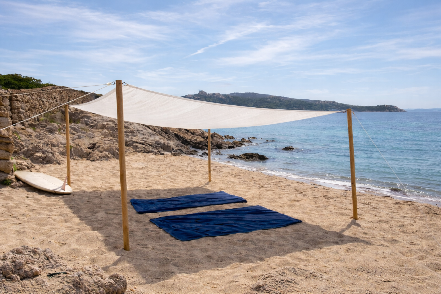 Elegant beach bags, discreet cooler bags and beautifully crafted towels complement the sun sail - creating a harmonious setting for slow, sunlit days by the water.