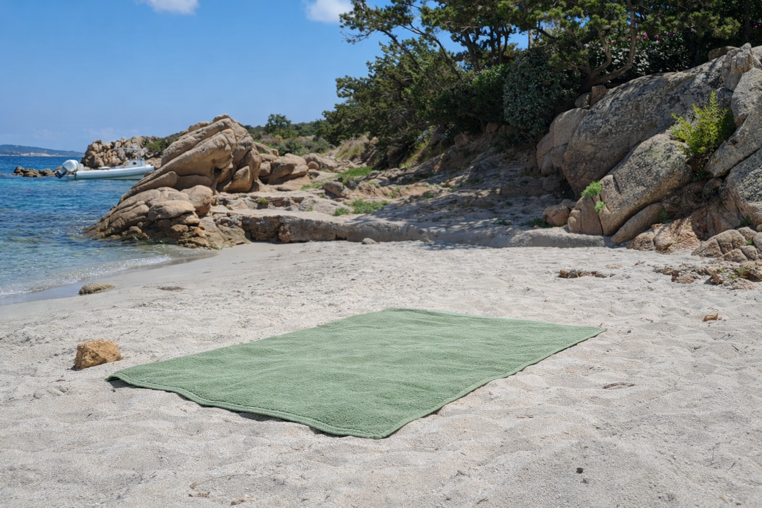 The blanket remains comfortable even on warm days and dries quickly after use, making it perfectly suited for coastal environments.