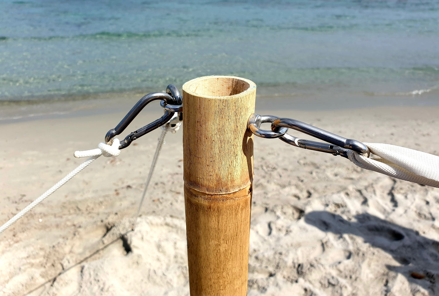 - Four sustainably sourced bamboo poles